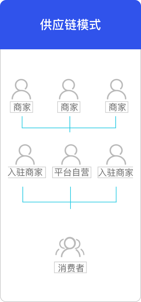 从商家的入驻、供货、采购、再到用户的分销、以及平台线下门店的管理,都形成了一个电商交易链的闭环电商平台