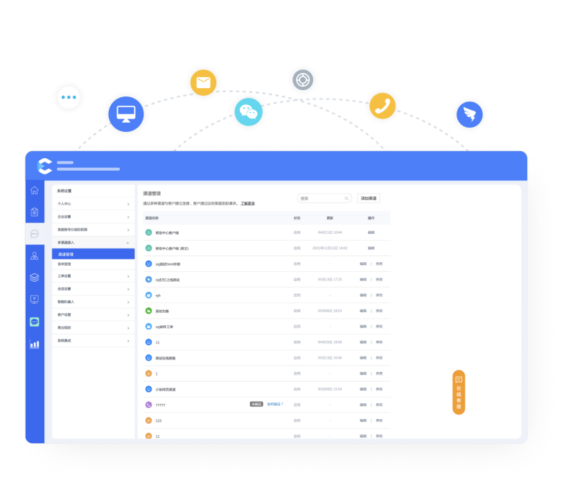 通过抢单次数、响应速度、处理速度等维度,进行统计分布、平均和累计的多维客服组和客服数据。 自定义客户和客户组统计,如满意度、评分、参评率、客户趋势等数据。